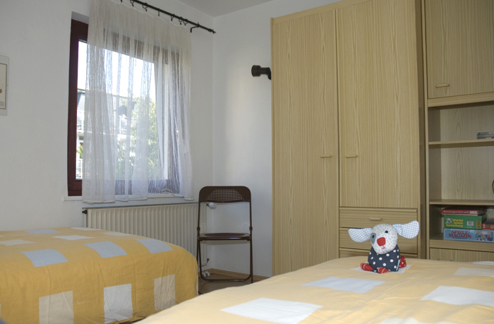 - Zur Wohnung gehören zwei Schlafräume für maximal vier Personen (ein Doppelbett-Zimmer und ein Zweibett-Zimmer) sowie ein Duschbad/WC (Fön vorhanden).